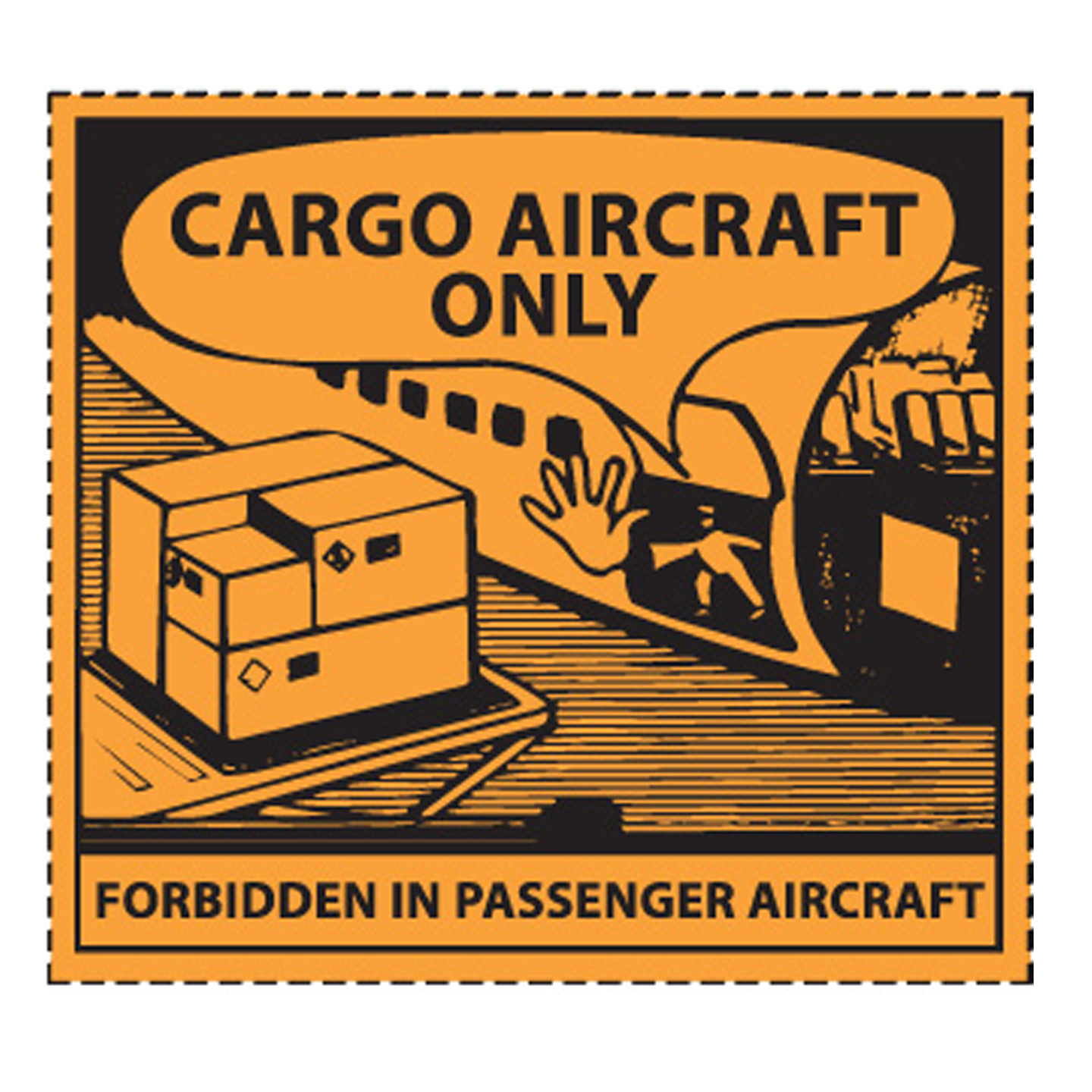 Handling label for goods prepared for carriage by Cargo Aircraft Only (CAO).